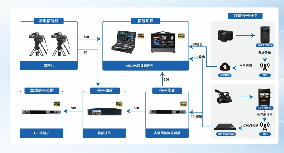 展会上,卓元呈现了以全系12G-SDI超高清解决方案为核心的产品矩阵,涵盖旗舰级4K导播切换台、光端机、多画面等设备,展现了从信号采集、导播切换、多画面监看的全链路4K现场制作能力。专业视听技术正在加速赋能千行百业的数字化转型,国产化超高清+轻量化制播+智能制播的组合,将为广电、军工、教育、医疗、应急、政企等领域带来全新的应用可能。